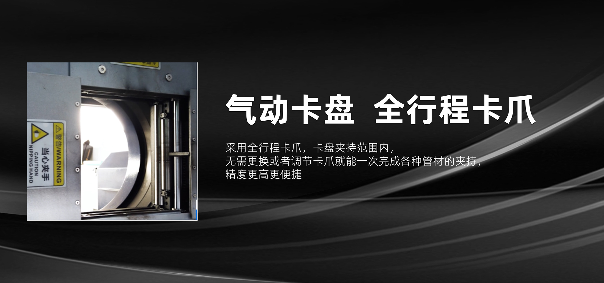 自定心氣動(dòng)卡盤,帶有薄管保護(hù)限位,保證薄管裝夾無(wú)損